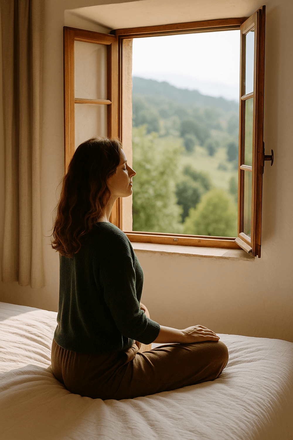 Tu ouvres les volets sur la nature. Tu respires. Tu es là. Entière.