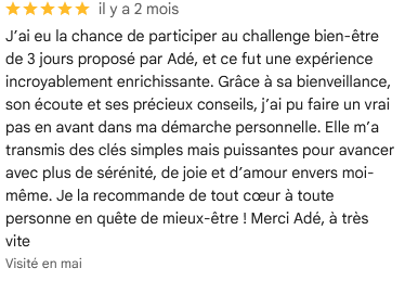 Adé et Estelle, deux âmes sœurs réunies par une alchimie unique, vous invitent à une retraite transformatrice où se mêlent breathwork, coaching énergétique et psychogénéalogie. Leur rencontre fortuite lors d'une retraite au Maroc a donné naissance à une amitié et une collaboration professionnelles exceptionnelles. Ensemble, elles vous accompagnent dans un voyage vers l'harmonie intérieure, alliant leurs outils complémentaires pour vous offrir une expérience unique de libération et de reconnexion à soi.